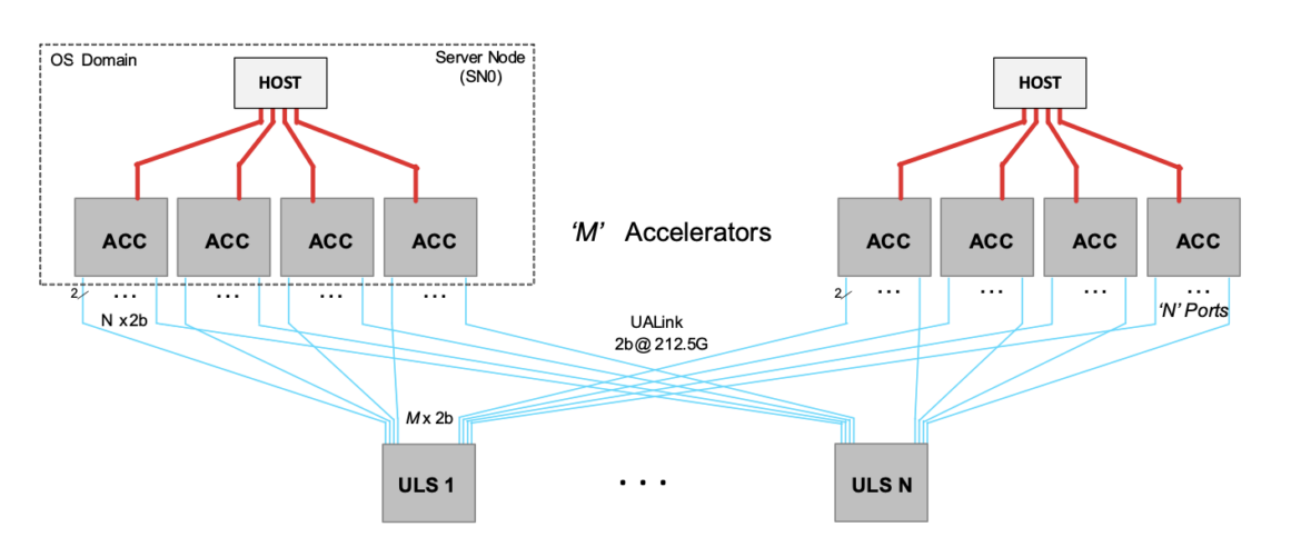 A especificação define uma interconexão de baixa latência e alta largura de banda, suportando até 1,024 aceleradores em um único pod de computação de IA. Ela fornece 200 GT/s por faixa, com sinalização a 212.5 GT/s para acomodar a sobrecarga. Os UALinks podem ser configurados em arranjos de faixa única (x1), faixa dupla (x2) ou faixa quádrupla (x4), com uma configuração de quatro faixas atingindo 800 GT/s de taxa de transferência bidirecional. O sistema é otimizado para comprimentos de cabo inferiores a 4 metros, permitindo latência de ida e volta inferior a 1 microssegundo.