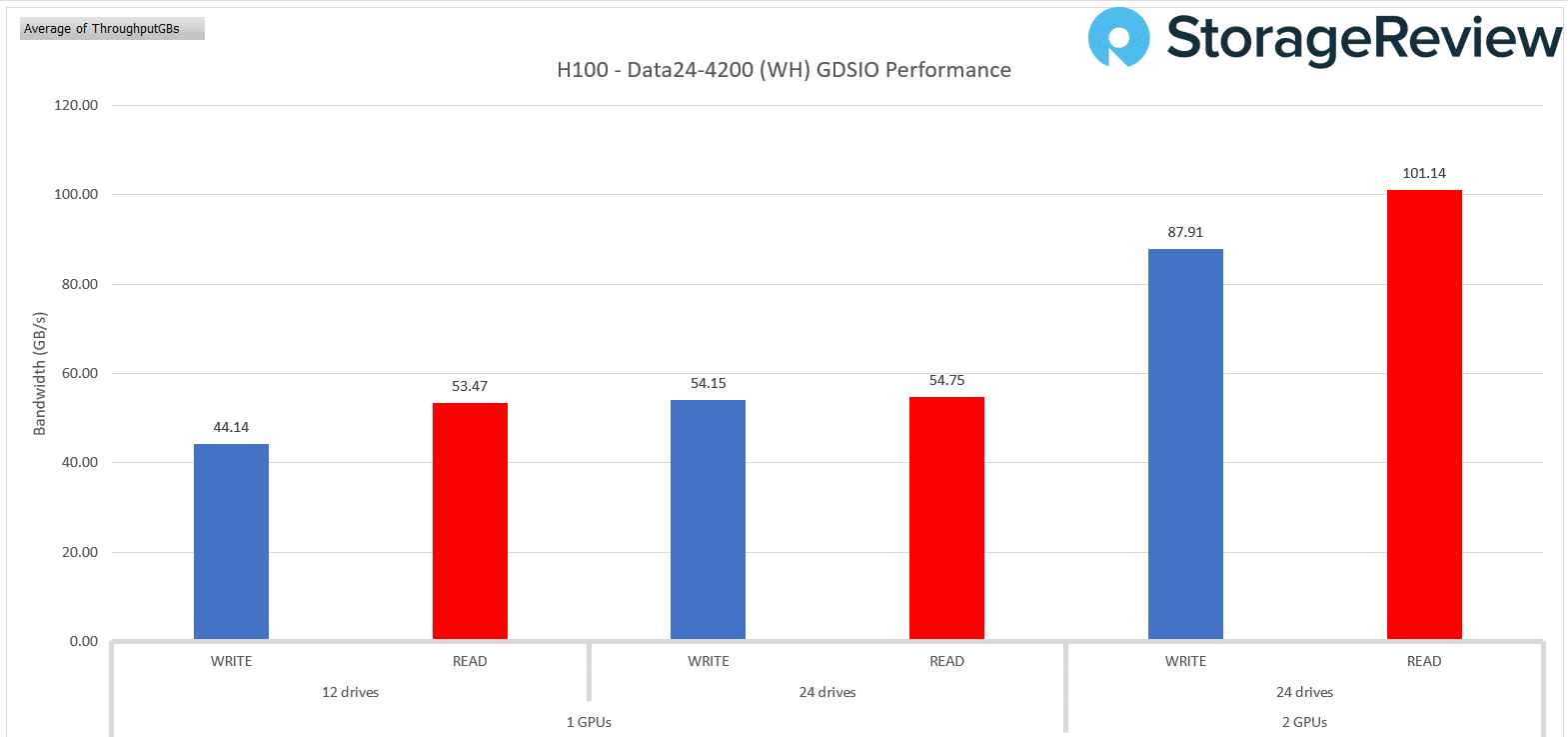 The benchmarking tool used for this purpose is GDSIO, a specialized proprietary NVIDIA utility designed to measure storage performance in GPU-direct storage (GDS) environments. We looked at a few configurations for this round of testing: a single GPU with 12 drives and 24 drives, as well as two GPUs with 24 drives.